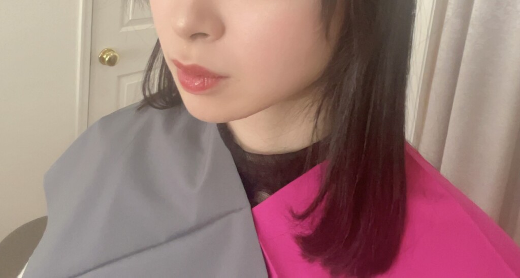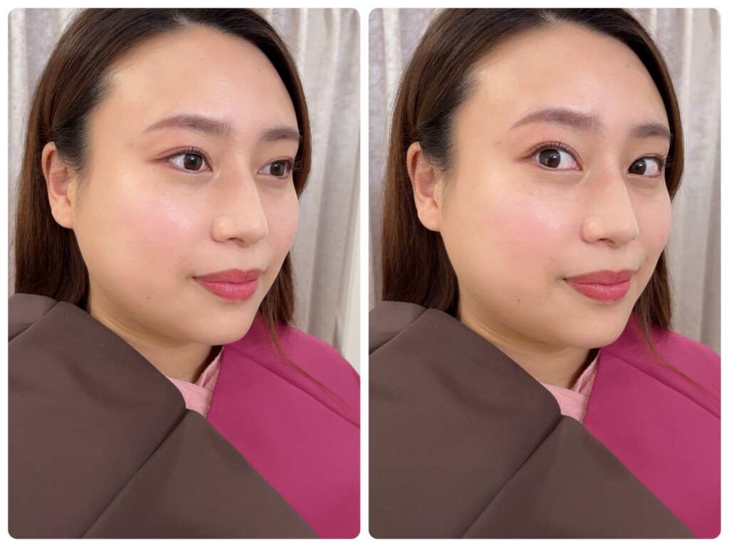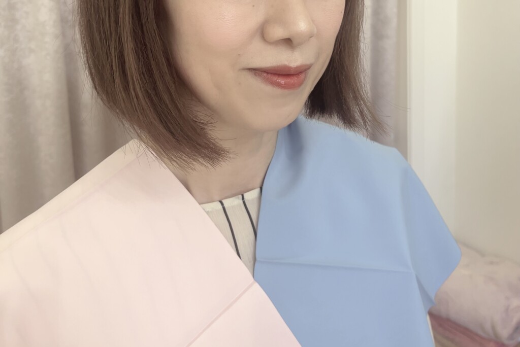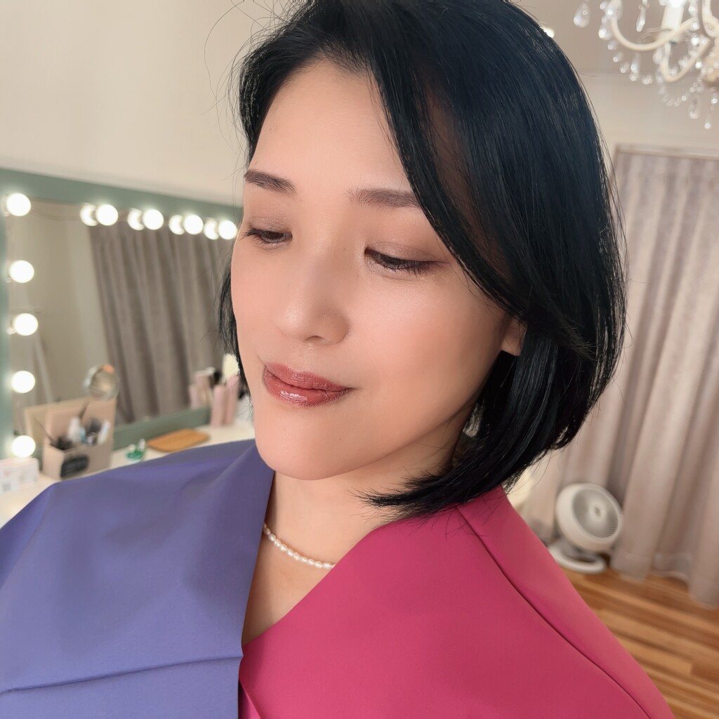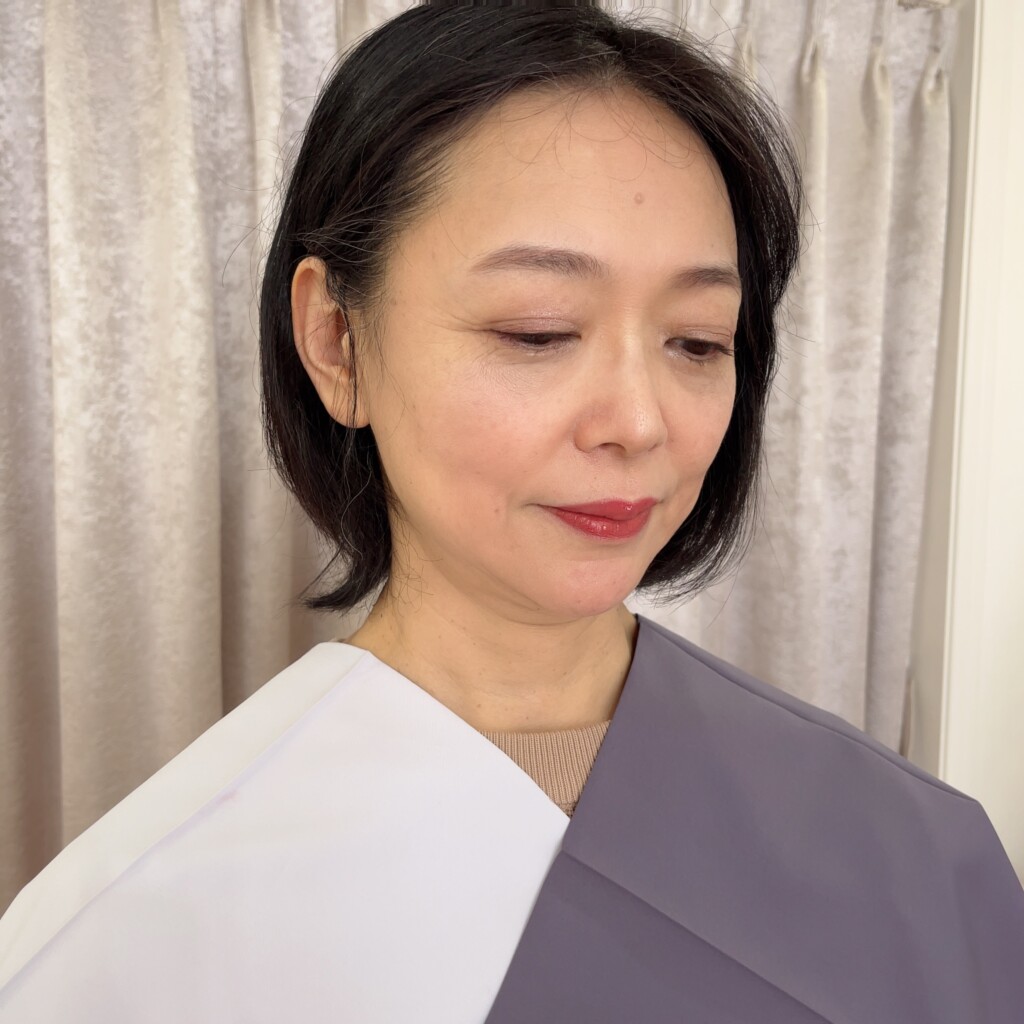 イエベ秋だと思っていたお客様。ブルベ冬のカラーで仕上げることで、お肌の透明感が一気に引き立ちました。普段選ばない色に驚いていました。