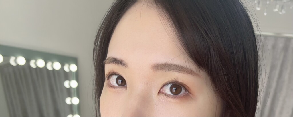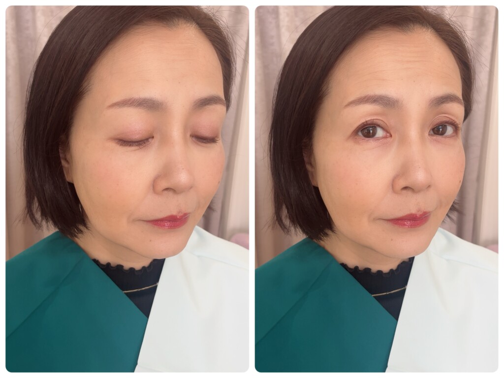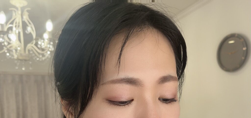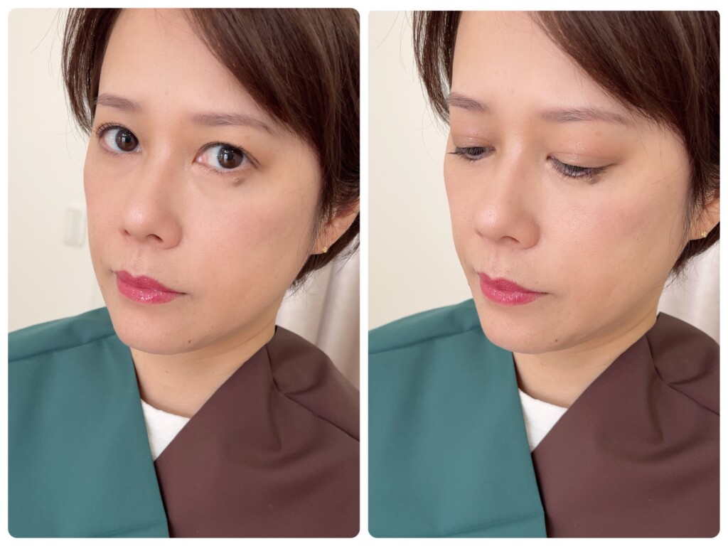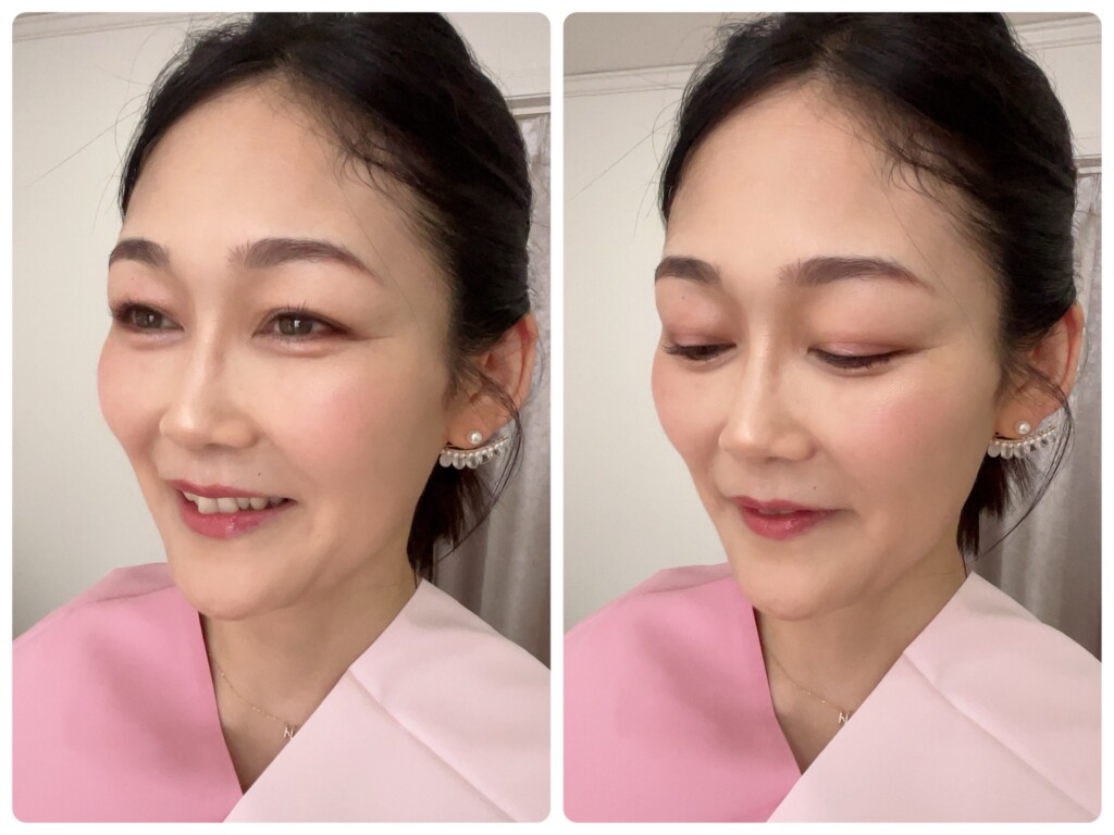 自己診断では【イエベ秋】だったお客様。『こんな色が似合うなんて!』と驚かれていました。ブルベ夏のカラーで納得の透明感。二重幅にはシルバーパールを忍ばせて。