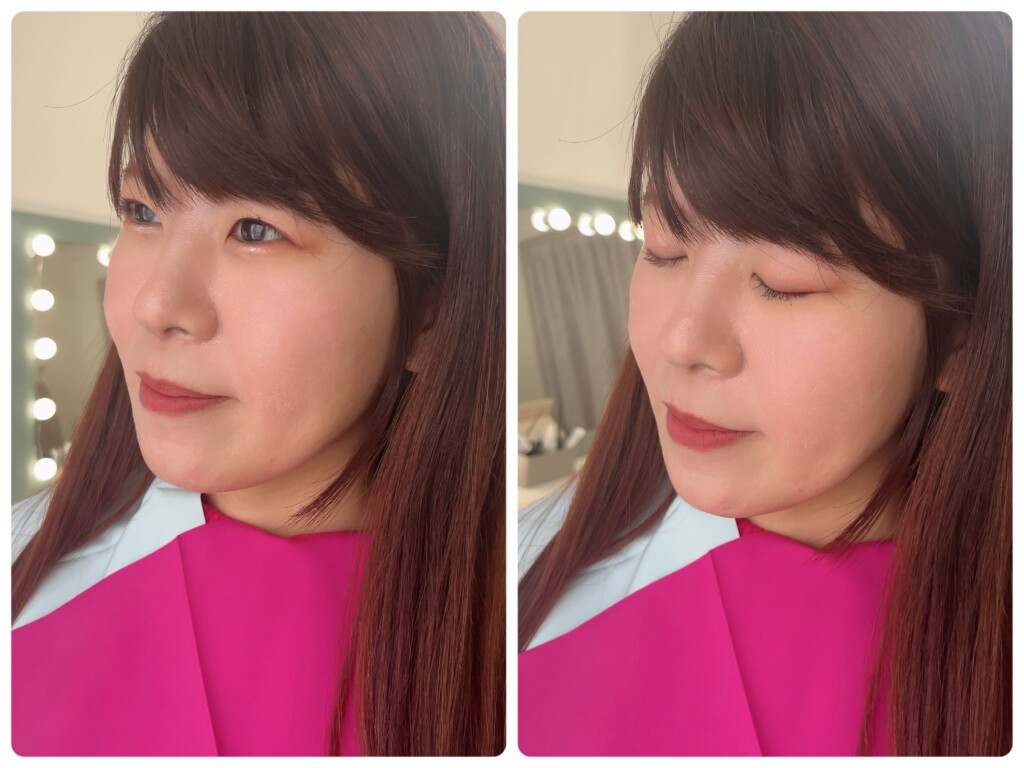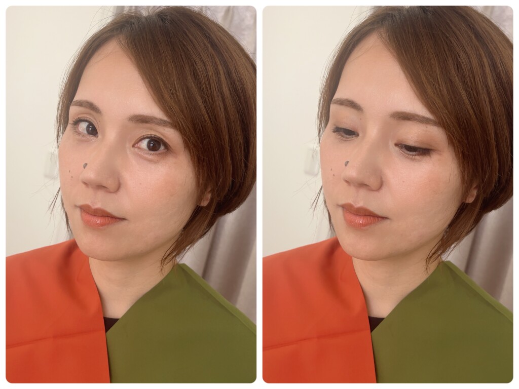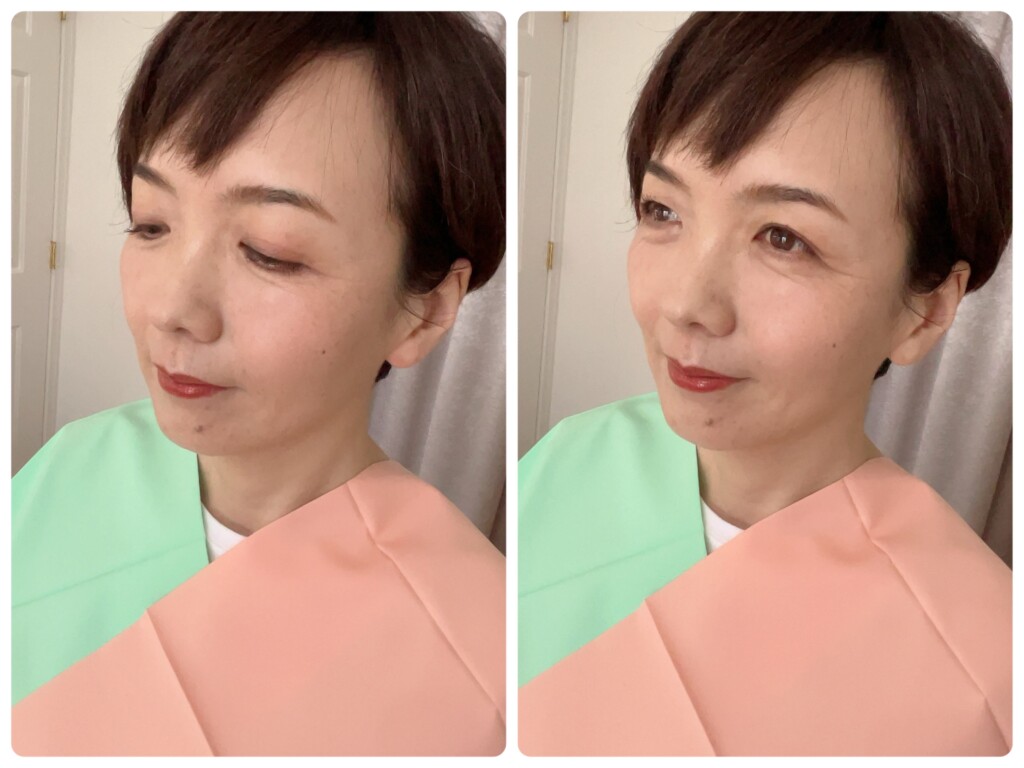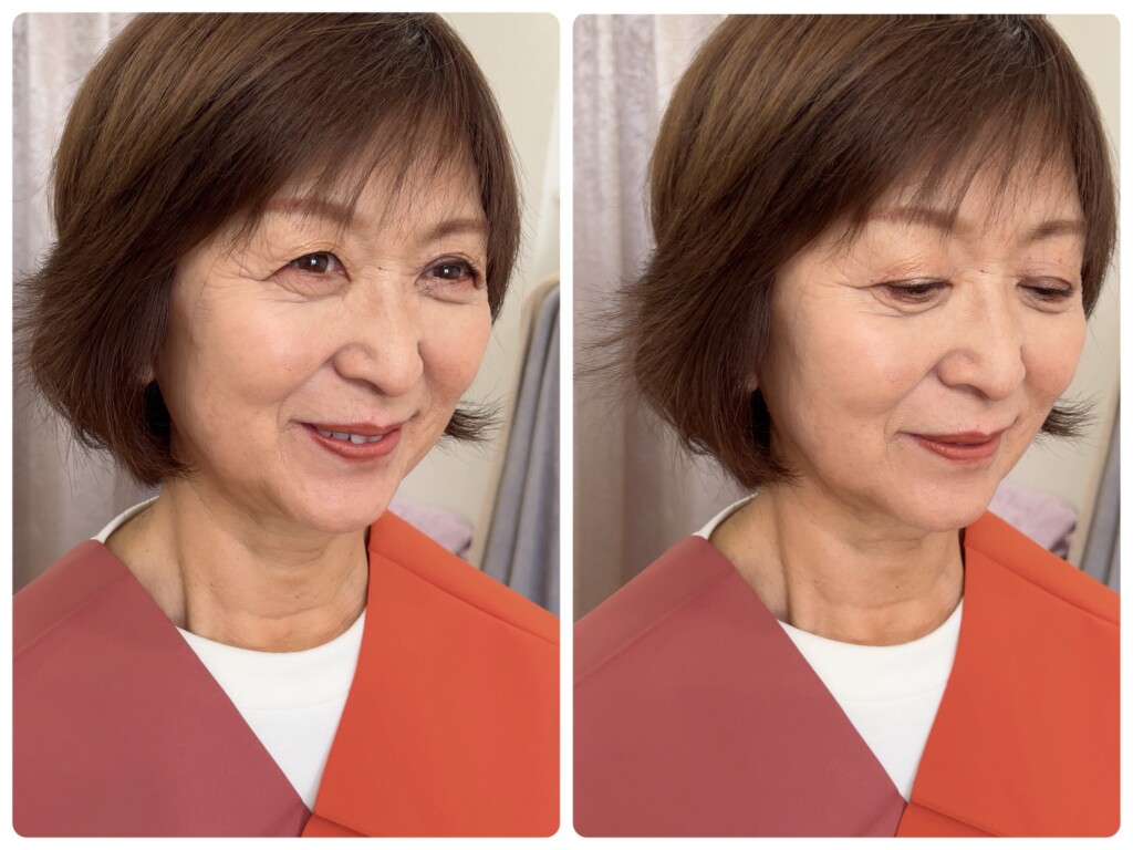 診断の結果に驚いていたお客様。普段使用しないカラーに何度も心配そうでしたが、塗ると驚くほど馴染み、透明感がアップしました。帰りにドラックストアで買いたいものリストがたくさんになりました。