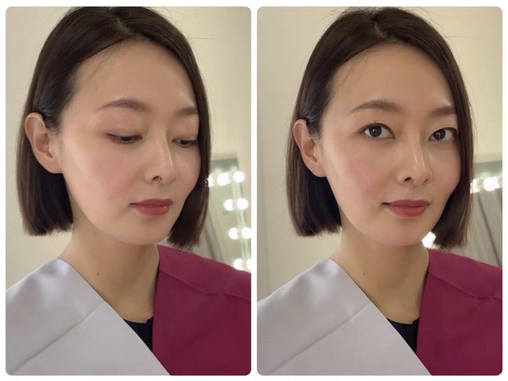 盛るメイクではなく、瞳や肌を輝かせるカラーを取り入れました。柔らかさをだすため