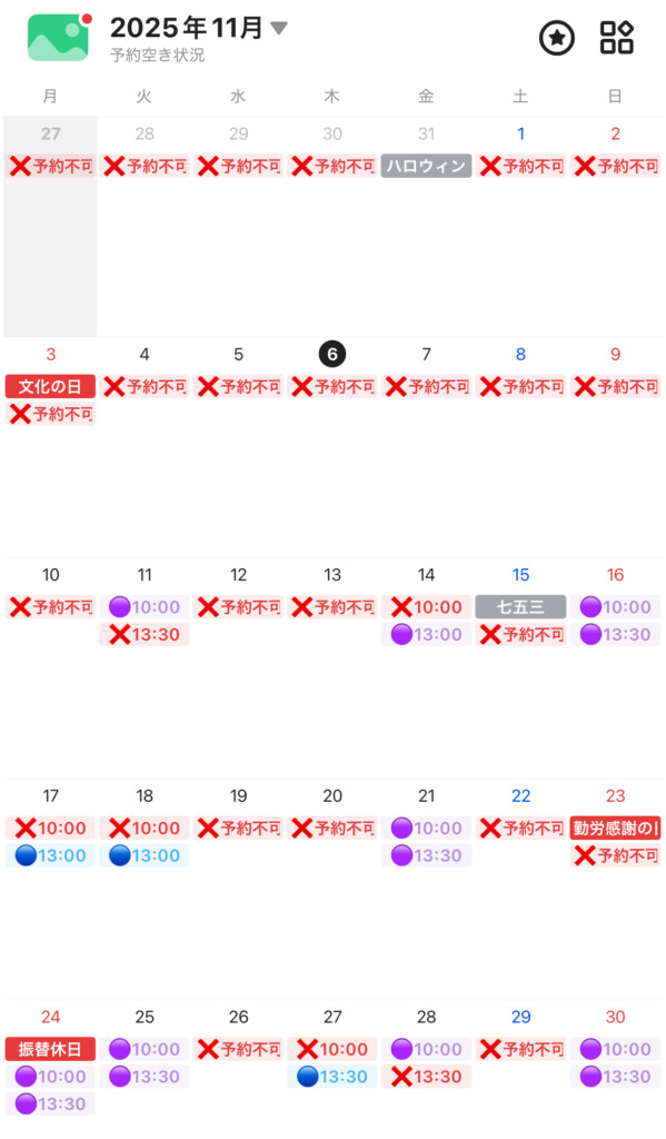 📅 11・12月度 予約空き状況のご案内